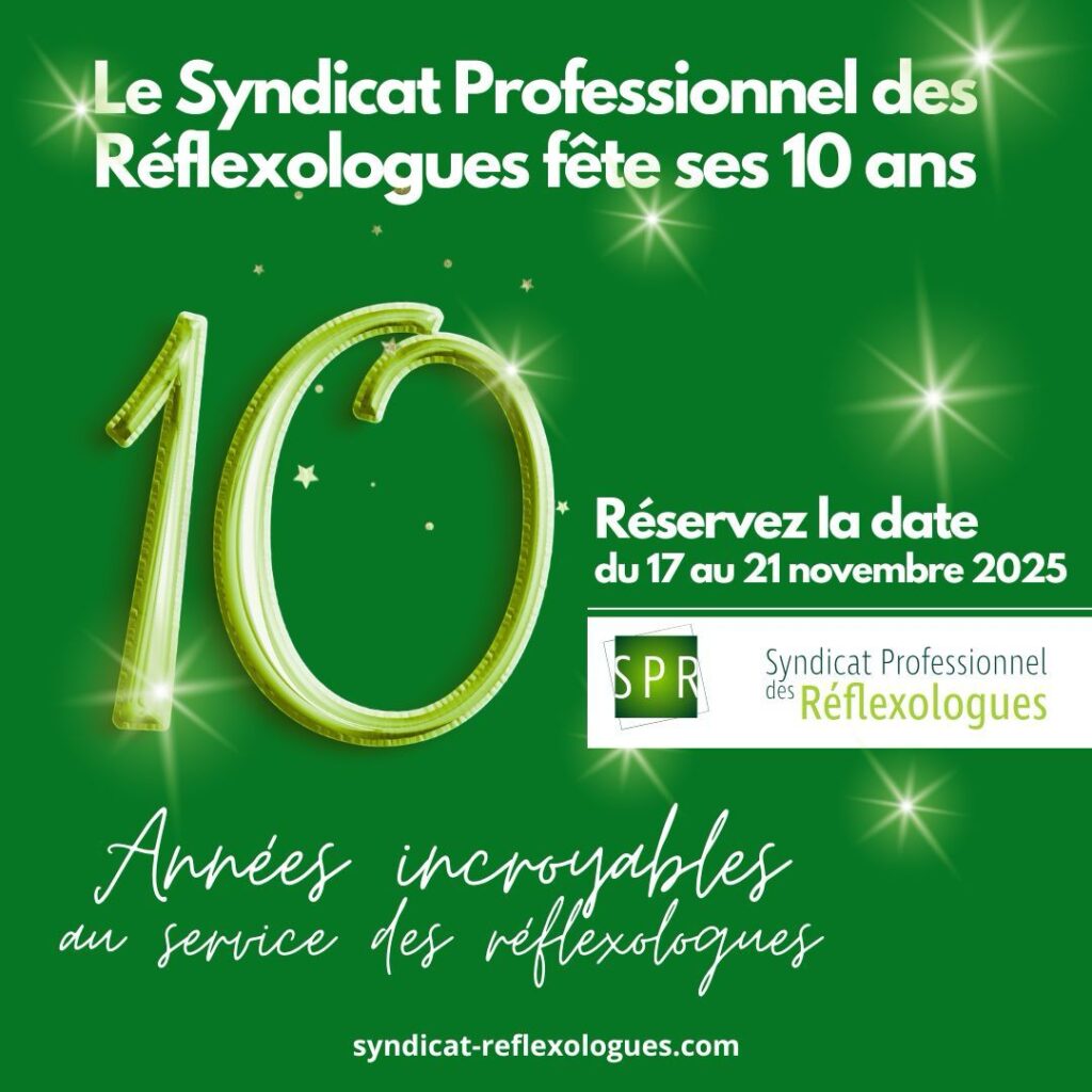 2025 = 10 Ans du SPR ! Retour en images Présentation des soirées Soirée d’Ouverture Soirée de clôture 10 ans du SPR en vidéo https://www.syndicat-reflexologues.com/ressources/Video_10ans_du_SPR.mp4 Liste des gagnants du jeu concours Liste des gagnants Ateliers semaine Anniversaire Présentations à télécharger E.I.R. Sonia Fischmann Audacieuse Nature Célia Montaigne Cécile Rémy – Milieu Médical Isabelle Guitton – […]